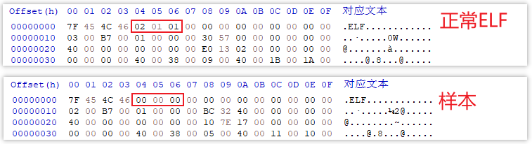 该信创木马通过将 ELF 文件 Magic Number 后的三个字节(用于标识位数、端序和版本)置零,实现了一种精准的兼容性攻击。此举导致传统 Linux 系统在识别文件时因格式错误而拒绝执行,信创平台却能正常解析运行。这一精心设计的细节,充分表明海莲花对国产信创系统的底层运行机制有着深入的理解。