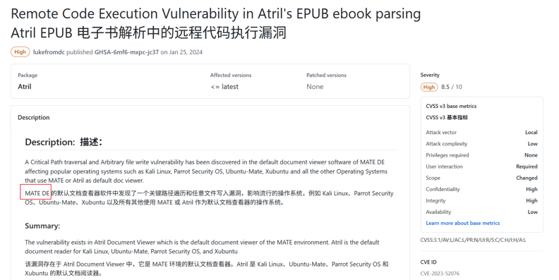经过分析发现为 2024 年 1 月份曝光的 Atril EPUB 路径穿越漏洞: