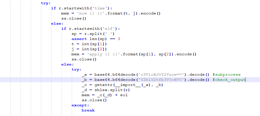 核心功能就是通过 subprocess 的 check_output 函数执行攻击者传递来的命令