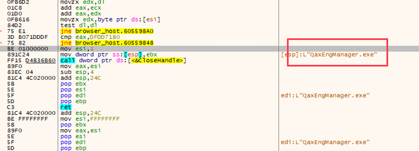 该特马 C2 回连内网密保服务器 IP 的 15001 端口,使用自定义协议支持两种远程指令,为 ping 和 init,发送 ping 命令时,服务器端会回复 “pong”,当发送 init 时,会将接收到的 shellcode 通过 CreateThread 的方式执行。