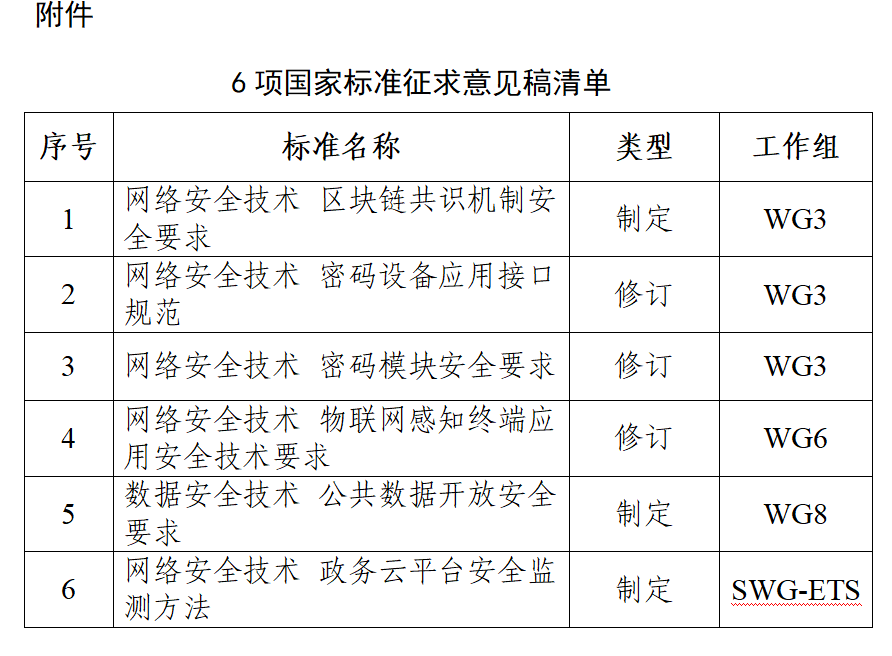 全国网络安全标准化技术委员会归口的《网络安全技术 区块链共识机制安全要求》等6项国家标准现已形成标准征求意见稿。