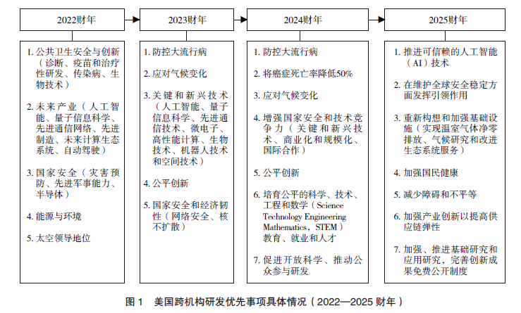 通过分析美国近年来跨机构研发优先事项的构成及变化,本文发现其存在以下特点。