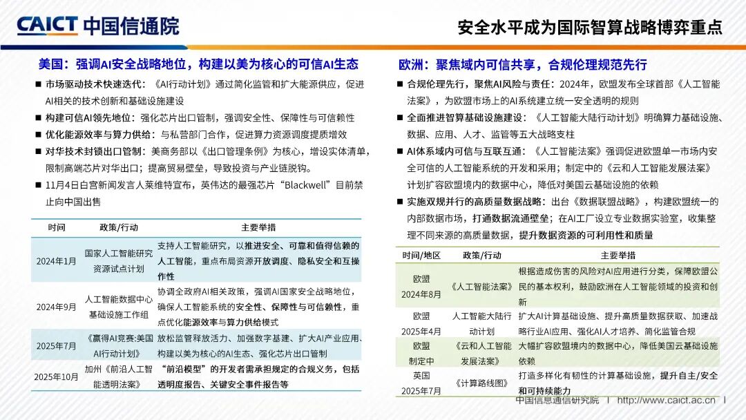 美欧强调主体AI安全战略地位,我国依托产业优势完善智算可信链条