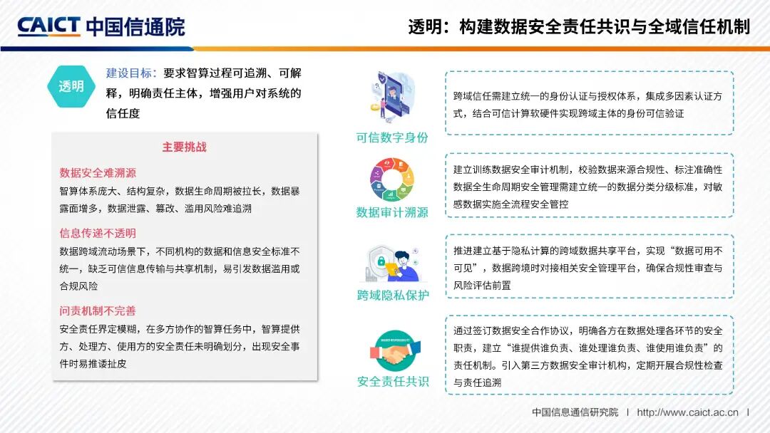透明是信任前提:要求智算过程可追溯、可解释,明确责任主体,增强用户对系统的信任度
