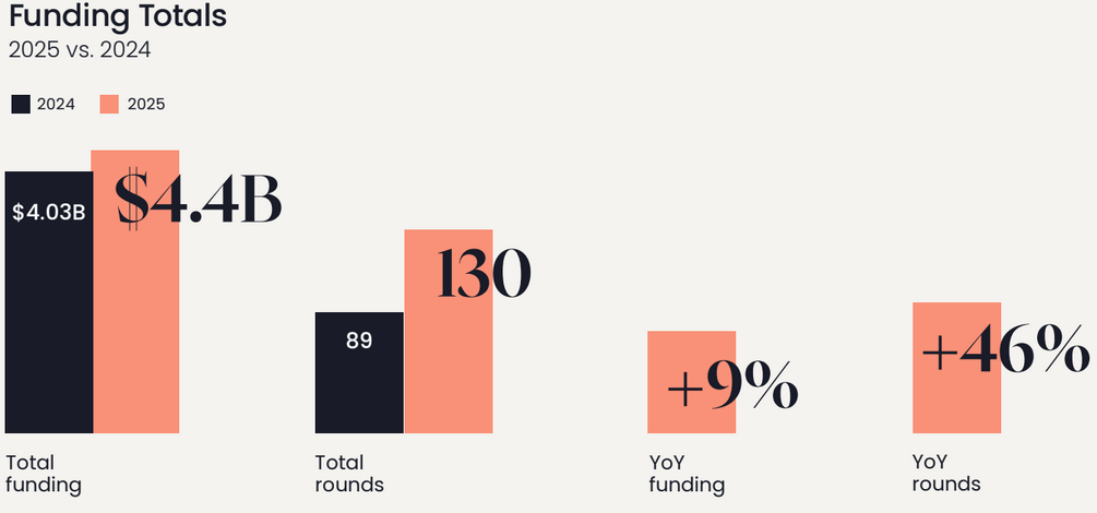 YL Ventures 指出,2025 年以色列网络安全企业共融资44亿美元,较 2024 年的40.3亿美元增长 9%。 今年共完成130轮融资,显著高于去年的 89 轮,显示资本市场活跃度明显回升。