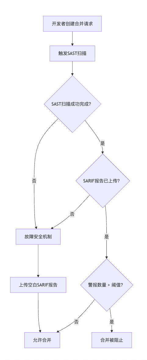 故障放行: 如果扫描流水线在任何阶段发生不可恢复的错误(非代码漏洞,而是系统错误),系统会自动上传一份空的 SARIF 文件。