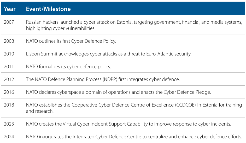 北约还建立了多个关键机构:2018 年在爱沙尼亚成立 “合作网络防御卓越中心(CCDCOE)”,提供培训与研究支持以提升网络能力;设立 “联合电子战核心参谋部(JEWCS)”,提供先进电子战培训及装备支持;2023 年推出 “虚拟网络事件支援能力” 项目。2024 年,北约进一步迈出重要步伐,成立 “一体化网络防御中心”,以集中并强化网络防御工作。该中心促进盟国间协作,简化威胁探测与响应流程,同时研发先进赛博工具与技术。这些里程碑事件,反映了北约为应对新兴威胁、持续提升网络能力所作出的坚定承诺。