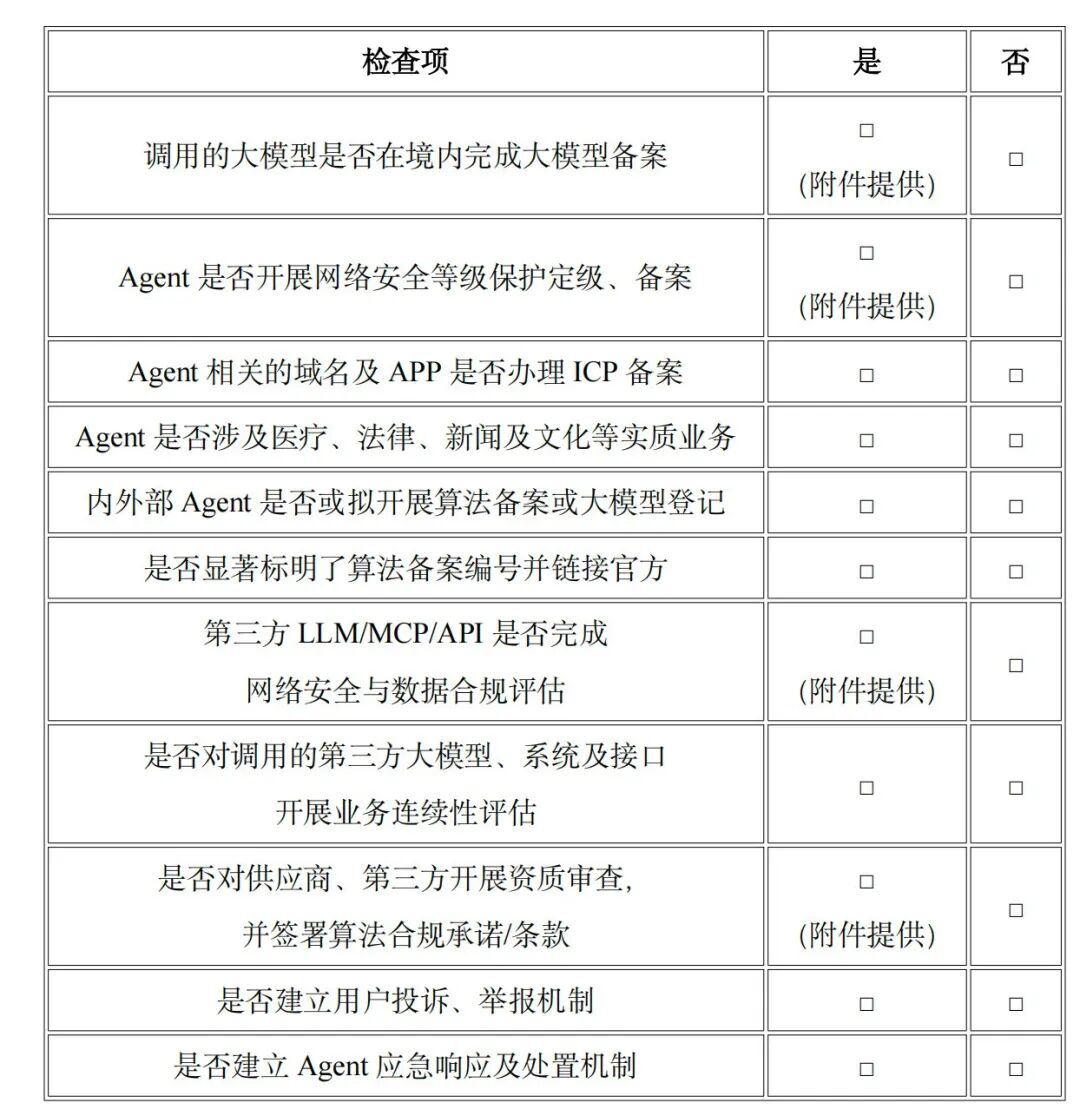 第三部分 AI Agent 上线前合规自评估清单(摘要)