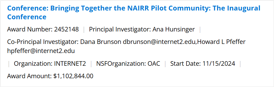 图:I2在NAIRR试点项目中获得NSF资金支持
