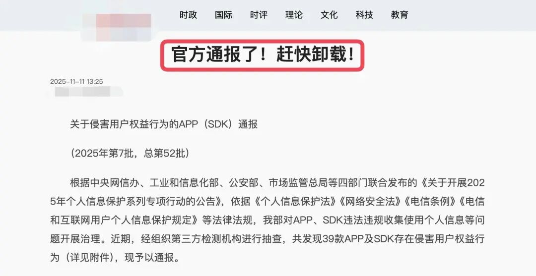 上述四部门从2025年3月底开始,又一次联合开展个人信息保护专项行动,重点整治APP(含小程序、公众号、快应用)和SDK(软件开发工具包)违法违规收集使用个人信息等问题。