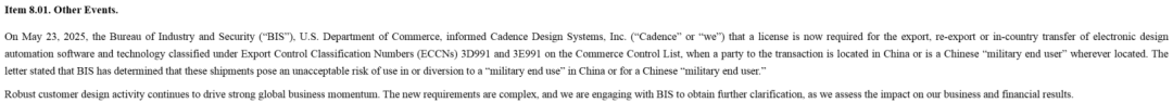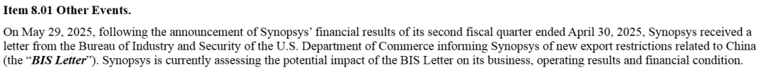 中美经贸谈判伦敦会判前,BIS于5月底再次以“告知函”形式,通过窗口指导方式通知美国EDA软件公司Cadence、Synopsys,要求对中国用户出口EDA软件实施许可证管理。