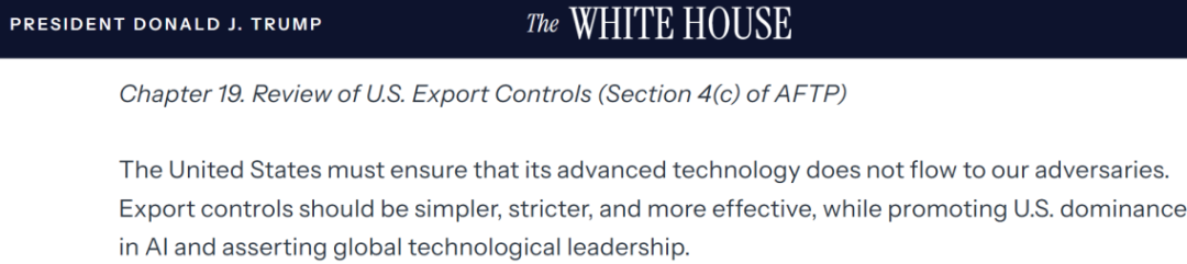 2025年4月1日,美国商务部长向总统提交了《美国优先贸易政策审查报告》,其摘要强调,出口管制应该更简单、更严格、更有效,同时促进美国在人工智能领域的主导地位并确立全球技术领导地位。