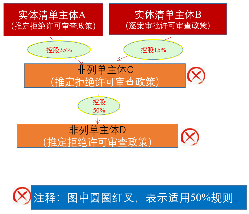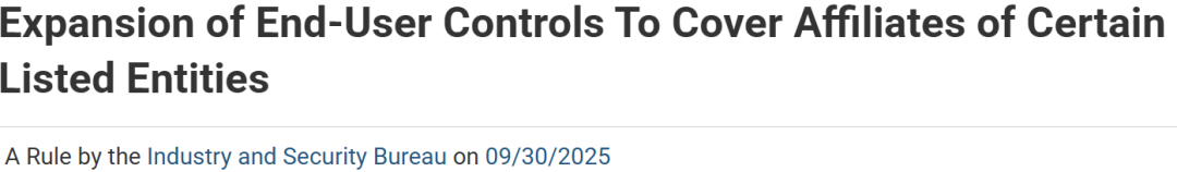 赶在美国政府停摆前,BIS借鉴经济制裁做法,于2025年9月30日发布50%关联方穿透规则,明确由实体清单、军事最终用户名单和特定SDN名单的一个或多个实体直接或间接、单独或合计拥有50%及以的关联企业将因穿透性规则被追加同等出口管制许可证要求,且参照其中一方最严格的许可政策执行。