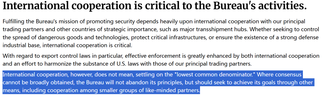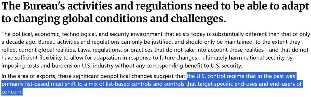 特朗普第二任期开启后,BIS在其职能页面新增了“指导原则”,明列重大的地缘政治变化意味着过去主要以清单为基础的管制制度必须转变为清单管制和针对特定最终用途和最终用户的管制相结合的管制制度,并创造性地思考如何利用新技术来制定更好的出口管制措施,并更有效地执行管制。