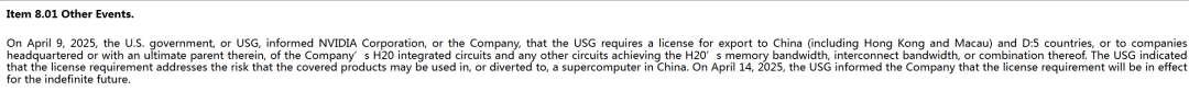 4.以“告知函”通知企业对华出口H20等芯片需申请许可证