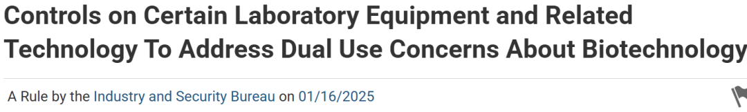2025年1月15日的临时最终规则,对部分实验室仪器实施出口管制,确保负责任地使用生物技术。该临时最终规则发布后立即生效,并寻求为期60天的公众评议。