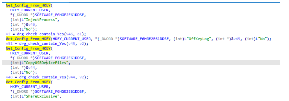 对解密文件进行分析,文件首先查看注册表是否存在相关配置: