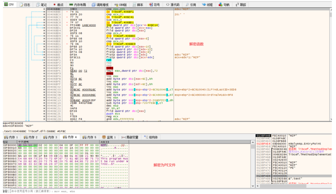 解密后实际为PE文件,后门通过反射加载该PE文件执行: