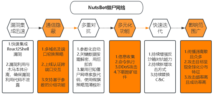 NutsBot僵尸网络家族集成了多种规避安全检测的技术手段: