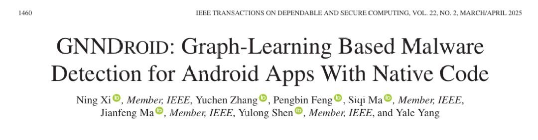 (1). Xi N, Zhang Y, Feng P, 等. GNNDroid: Graph-Learning Based Malware Detection for Android Apps With Native Code[J]. IEEE Transactions on Dependable and Secure Computing, 2025, 22(2): 1460-1476.