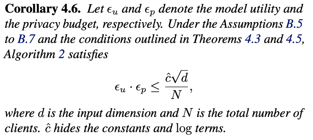 论文在理论上证明了得益于参数优化的低秩性,FedCEO在效用-隐私权衡上比现有SOTA方法提升 ,其中d为输入维度。
