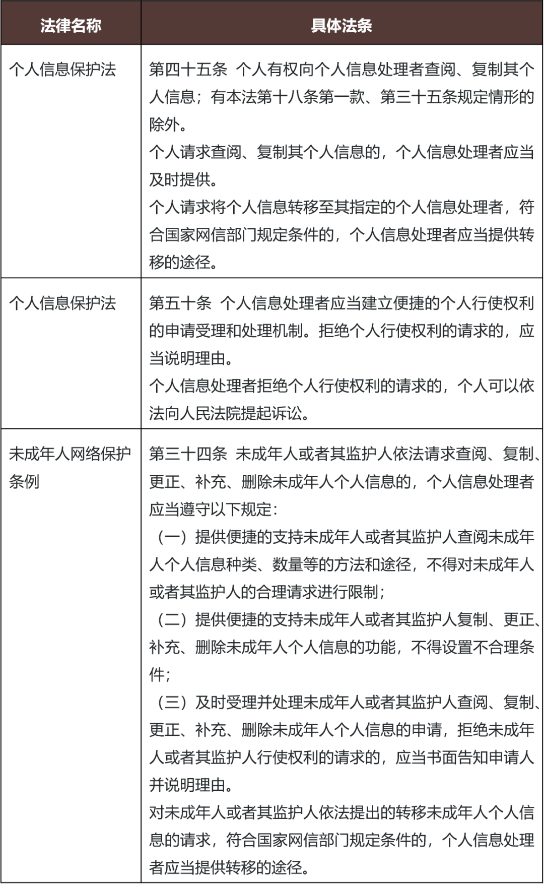 《未保条例》以专章对“个人信息网络保护”作出规定,与《个人信息保护法》相衔接,并未重复规定相关内容,将个人信息权利响应作为重点之一。