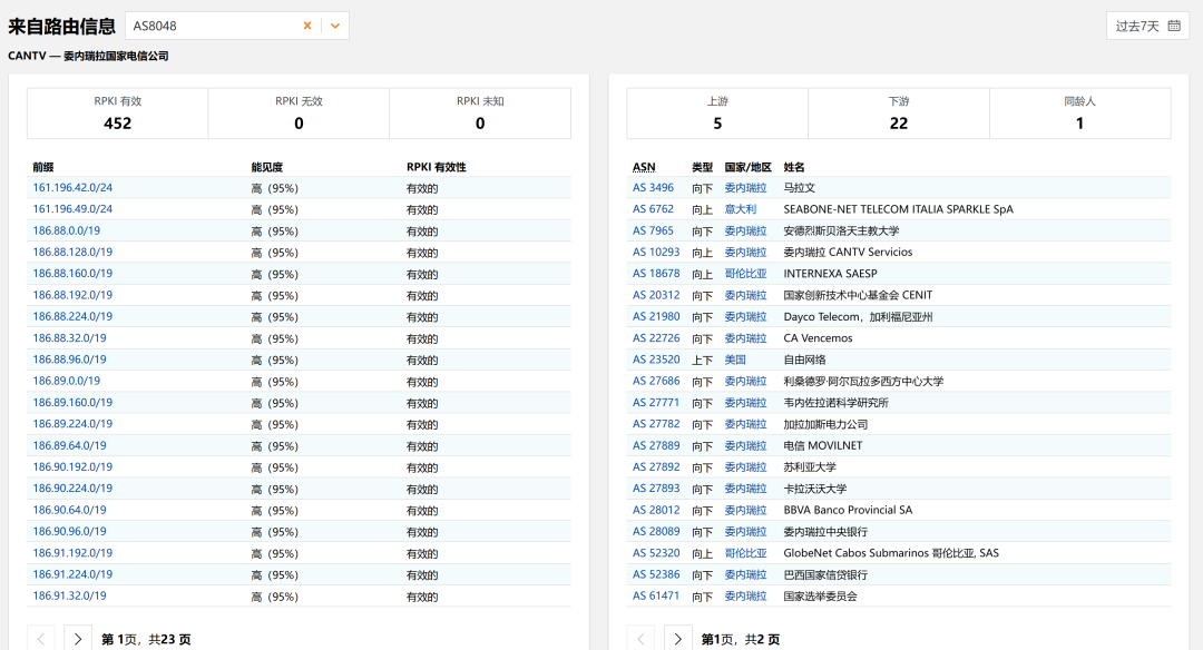 其网络高度依赖上游运营商CANTV的国际出口,在此次事件中,其托管的关键基础设施前缀成为异常路由的主要对象。