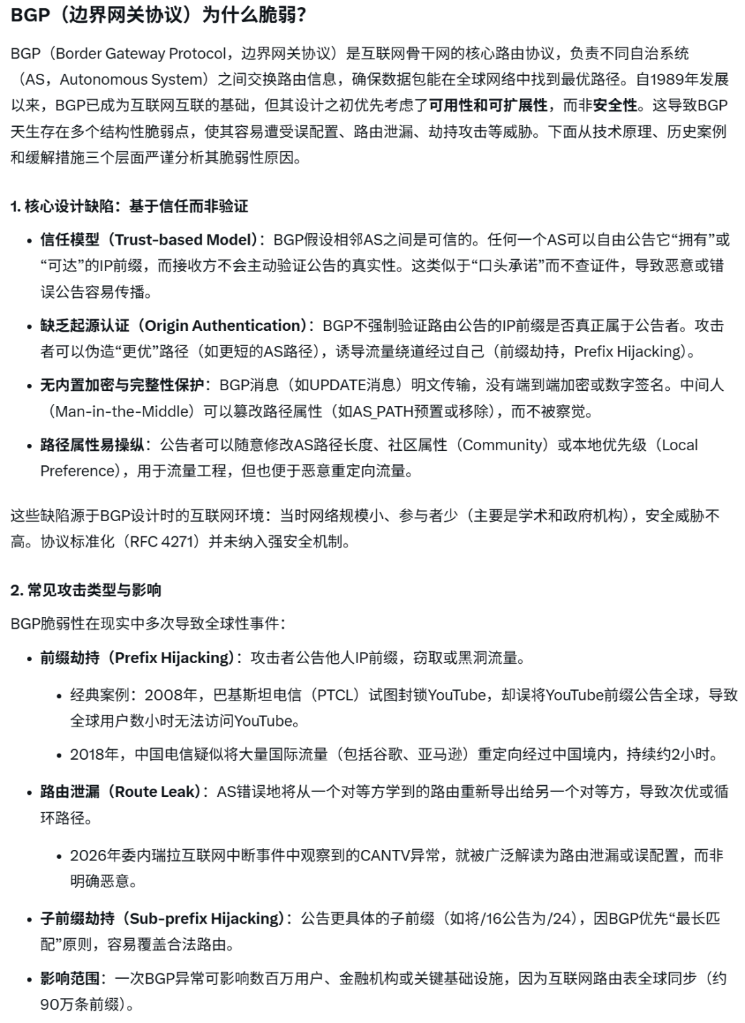 最后Ai科普一下BGP的脆弱性。