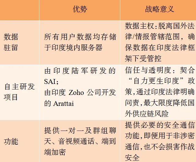 印度国防人员的通信习惯,给作战及后勤数据安全带来重大漏洞。其广泛且随意使用WhatsApp等商业即时通讯平台(即便用于非密但涉及作战的敏感通信),由此形成了巨大且常被忽视的安全漏洞,导致关键元数据暴露在外国情报机构监控范围内。要实现真正的数字独立需战略转型,即采用印度自主研发的通信平台。例如,印度自主开发的互联网安全应用程序(SAI)与Zoho公司推出的Arattai应用程序,便是可行且可立即部署的替代方案,既能解决上述安全问题,又能助力本国技术发展。
