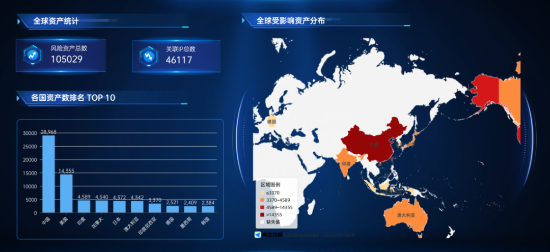 ComfyUI-Manager 远程代码执行漏洞(QVD-2026-2759)关联的全球风险资产总数为105029个,关联IP总数为46117个。全球风险资产分布情况如下: