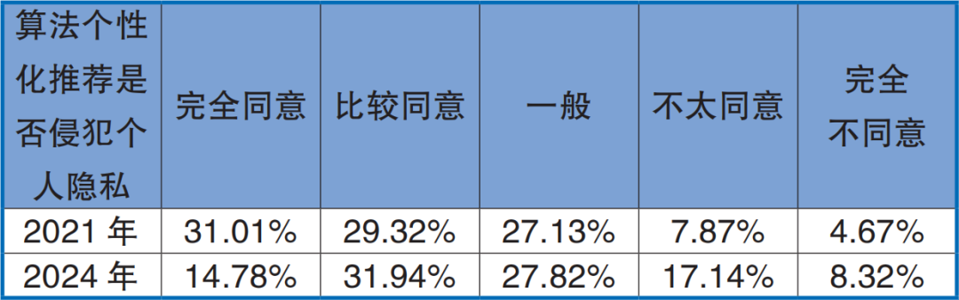 两次调研数据的历时性对比,清晰展现了2021年至2024年公众算法认知的变化趋势,既印证了治理政策的成效,也揭示了深层次的治理需求。