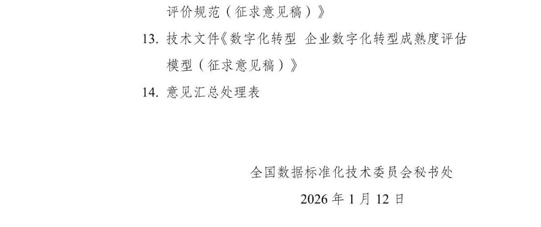 现面向社会公开征求13项技术文件意见,如有意见或建议,请于2026年2月10日前将附件14反馈至hongweihere@foxmail.com。
