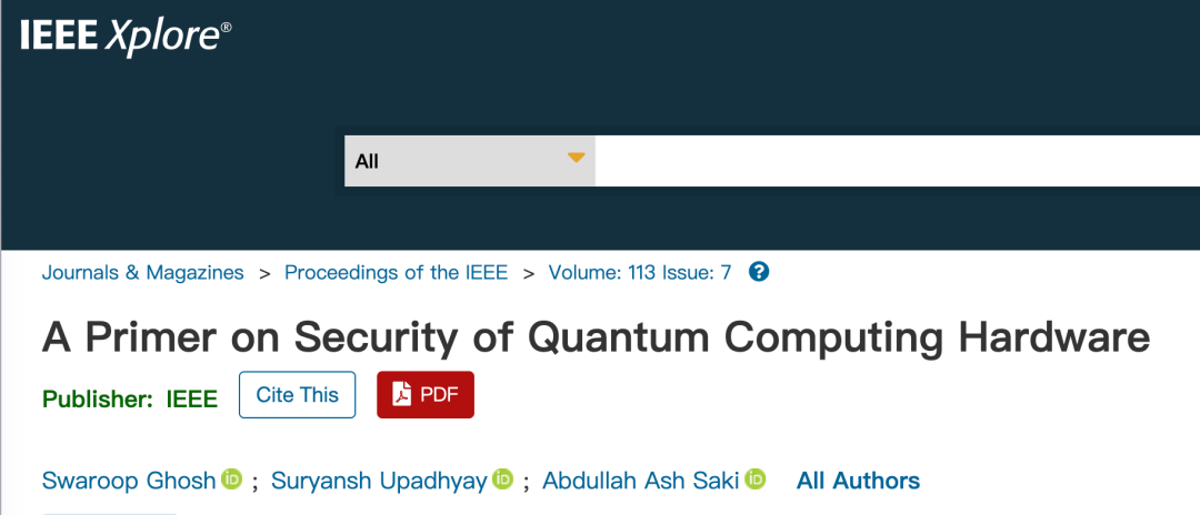 该研究得到了美国国家科学基金会和英特尔的支持。研究以“A Primer on Security of Quantum Computing Hardware”为题发表在IEEE。