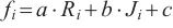 长的量化值序列,序列的每一位表示某个业务对特征性能指标映射的值。如式(1)所示,对于任意指标