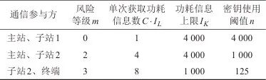 选取业务场景的风险等级见表4,展示了业务场景中不同节点之间通信的安全风险及对应的密钥使用阈值。根据设置的业务场景,主站与子站1、子站2之间通过光纤网络进行通信,安全度较高,对应的密钥复用阈值更高,同时子站2的安全防护等级较子站1更弱,因此主站与子站1之间通信的安全风险最低,态势感知系数最高,主站与子站2之间通信的安全风险其次。子站2与终端之间的通信通过无线信道进行,密钥复用阈值较低,面临的安全风险更多,密钥使用阈值最低。