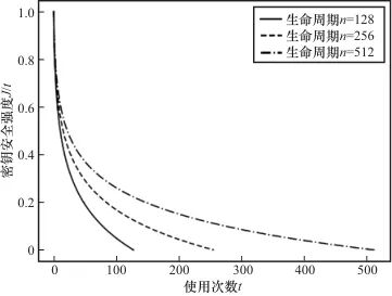 对于单个电力业务,一方面,业务的密钥使用比是业务安全度水平的直接体现。对于相同长度的明文,密钥数量越多,密钥使用比越接近1,业务安全度越高。另一方面,业务重复使用QKD协议生成经典密钥的次数同样会影响业务安全性水平。现代密码学依赖于计算安全的概念,密码系统所提供的安全级别可表现为攻破它所需要的计算资源量。在安全性理论中,基于计算复杂性的假设,在当前计算能力下很难在有限时间内攻破现有密码算法,直接针对密码算法的攻击通常难以获得显著成效。然而在实际密码攻击中,密钥通常比密码算法更加脆弱,攻击者无须攻破密码算法,仅需要根据密码算法特点针对性构造数据并分析密文结果,或是收集加密设备在使用相同密钥加密不同明文时所泄露的物理信息并进行分析,就能够获得密钥信息。对于一个电力业务,其综合重要度指标保持相同,当其量子密钥使用频率保持恒定时,使用同一密钥的次数越多,加密过程中泄露的信息越多,攻击者越容易破解密钥,业务安全度越低。