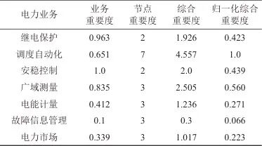 表2 电力系统中各业务重要度结果