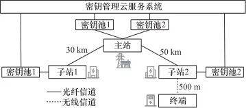 密钥管理云服务系统是整个业务网络的密钥源,由业务网络中的主站进行管理,能够根据站点的差异化密钥需求设置不同的密钥调度方案。业务网络共包含4个节点,根据节点在业务网络中的功能可分为3类。