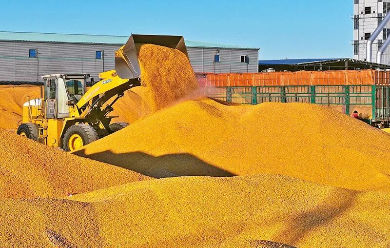 新征程上,要加强重点领域安全能力建设,夯实粮食、能源资源、产供链、战略通道等国家安全基础保障能力。国家统计局数据显示,2025年全国粮食产量14297.5亿斤,比上年增加167.5亿斤,全国粮食实现丰收。图为2025年10月14日,在北大荒集团北安分公司龙镇农场有限公司粮食烘干合作点,铲车正在转运待烘干的玉米(无人机照片)。 新华社发 钱泊羽/摄