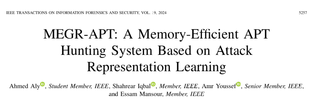 论文题目:MEGR-APT: A Memory-Efficient APT Hunting System Based on Attack Representation Learning