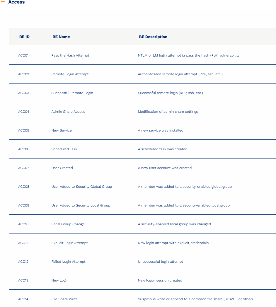 BAS/CS行为标记提供广泛的行为分组,用于对传感器可能生成的事件类型进行分类。这种事件标记方法允许灵活选择传感器功能。供应商专有的事件分析功能被映射到BAS/CS事件标签,从而标准化了如何对各种传感器事件数据执行关联分析。BAS/CS事件(BE)主要分为两类:主机事件和网络事件。