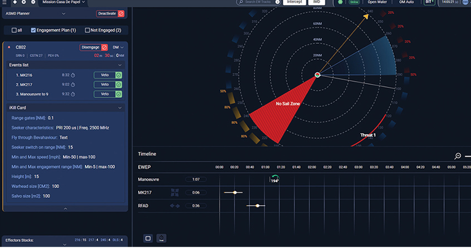 海上电子战综合能力系统集成的电子战指挥控制功能,同样将为实时反舰导弹防御提供支撑。具体而言,该系统将融入威胁评估与武器分配(TEWA) 技术与流程 —— 这一技术此前更广泛应用于硬杀伤武器领域。这意味着系统将实现全自动化的电子战交战规划,操作人员只需进行监督决策;系统内置多威胁交战战术,并可接收来自任意来源的预警探测信息。