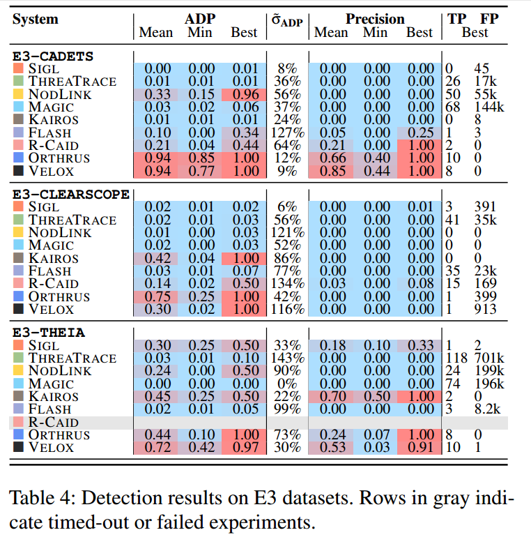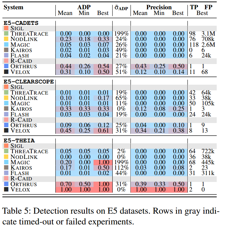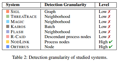 数据集:使用 DARPA 透明计算项目的 E3、E5 和 OpTC 数据集,均带有精细的节点级真实标签。
