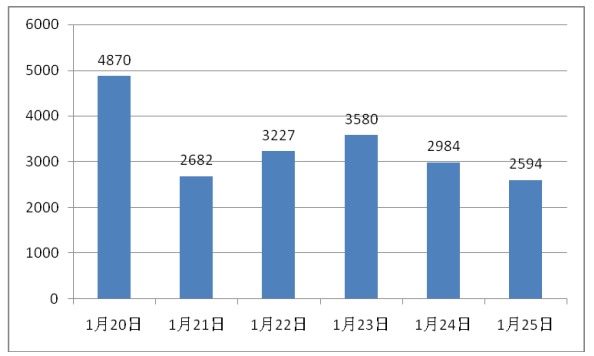 通过监测分析发现,2026年1月20日至25日期间,RCtea僵尸网络在我国境内已确认的活跃“肉鸡”规模达9827台,境内日上线肉鸡数量最高达4870台,肉鸡C2日访问量最高达27.8万次。上线肉鸡IP数量分布情况如下: