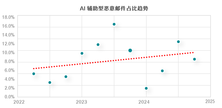 AI辅助型恶意邮件占比趋势