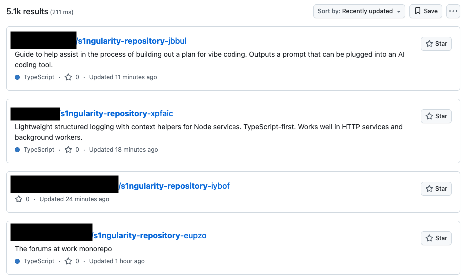 2025年8月26日,广泛被数百万开发者使用的构建工具Nx遭遇入侵。攻击者获取了项目维护者的npm访问令牌后,迅速发布了多个被植入恶意代码的版本,整个攻击窗口持续了5个多小时,潜在影响范围可达成千上万名开发者。供应链投毒本身并不罕见,但此次事件的特殊之处在于,恶意代码并非单纯自行执行,而是主动调用受害者本地已安装的AI开发工具,让这些工具充当信息搜集和数据外传的“帮手”。攻击者直接驱使Claude Code、Gemini CLI、Amazon Q等AI助手对本机钱包、文件和令牌进行全面扫描,并将结果打包发送出去。在一波攻击中,攻击者利用被泄露的凭证将原本私有的组织存储库公开,下图是攻击者将受害者私有存储库重命名为“s1ngularity-repository-{随机字符串}”并将其设置为公开状态的截图。