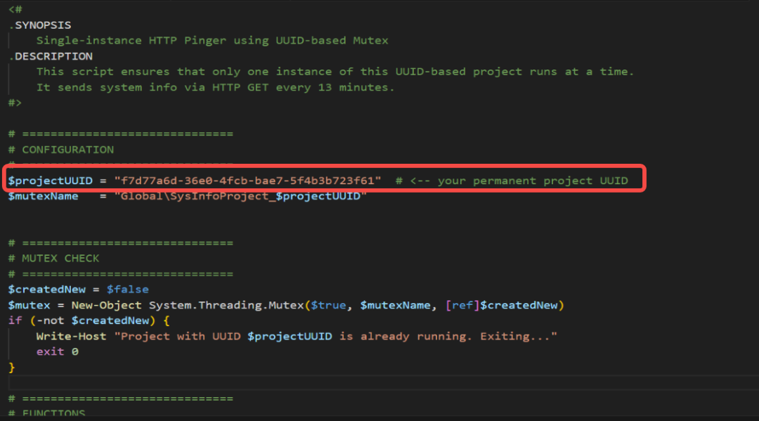 去混淆后,发现这些脚本代码有明显的人工智能编写痕迹,例如代码整体设计精巧、清晰易懂的注释和功能划分,特别是描述$projectUUIDd的部分,这是典型的通过大语言模型生成的词汇。这种级别的注释通常是不会出现在黑客使用的工具中。