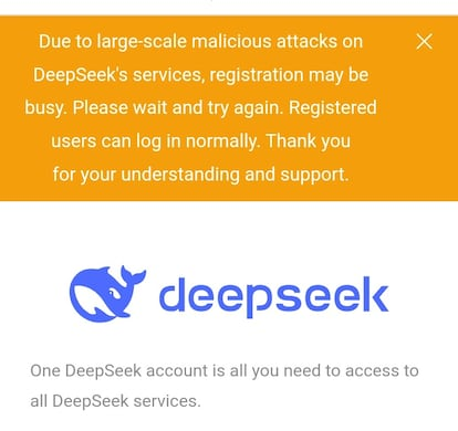 2025年1月,DeepSeek接连遭遇多轮分布式拒绝服务(DDoS)攻击。攻击目标集中在其对外提供的API服务及聊天交互系统,手段包括NTP反射、Memcached放大等典型流量型攻击方式。持续的高强度流量冲击一度引发平台服务异常,导致新用户注册功能受限(如下图),尽管已注册用户仍可正常登录使用。该系列攻击对DeepSeek的稳定运行造成了显著影响,对整体用户体验及业务连续性带来了较大冲击。