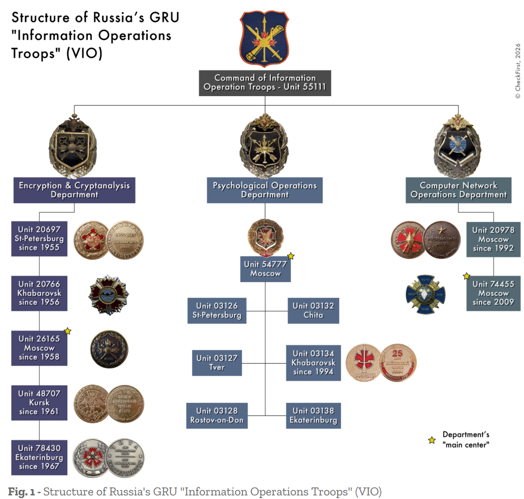 该部门核心承担认知操纵任务,以希腊字母 ψ 为核心符号,其前身可追溯至 1940 年成立的苏联红军特种宣传局,1991 年划归 GRU 管辖,采用主中心加区域作战群的编制架构。